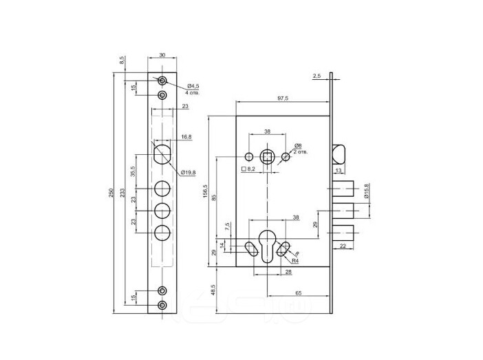 Размер ригеля:18 мм