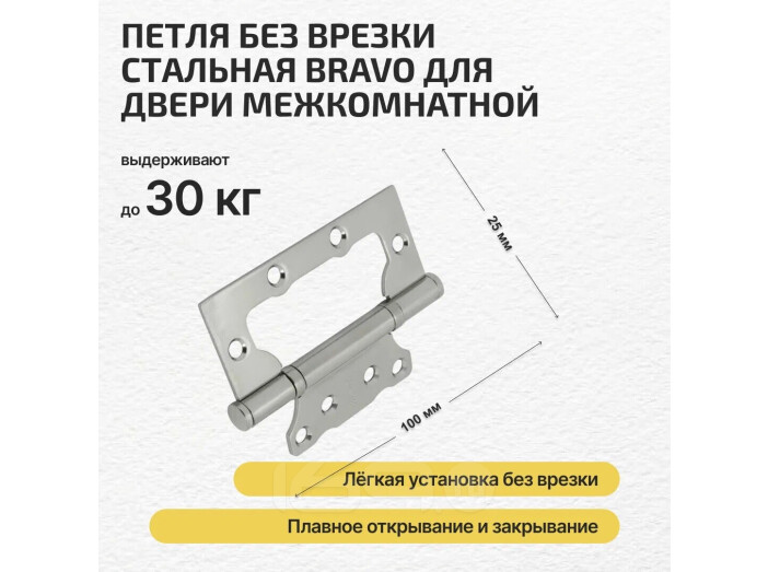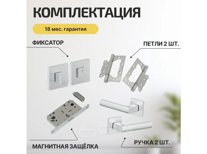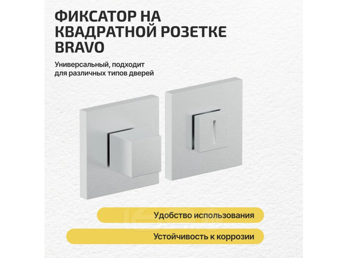 Комплектация:Ручка на квадратной розетке Bravo AS-300 SChrome (алюм.)+ Петля без врезки стальная Bravo F-4-2BB 100*75*2,5 SC МатХром (универс.) ( 2 шт) + Фиксатор на квадратной розетке Bravo AS-3WC Schrome + Защелка магнитная Bravo M-3-WC SC МатХром