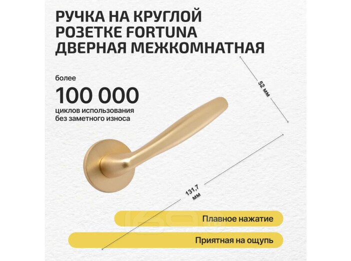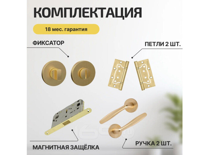 Комплект фурнитуры сатин золото, Ручка дверная Fortuna с магнитной защелкой, петлями бабочка, сантехнической заверткой