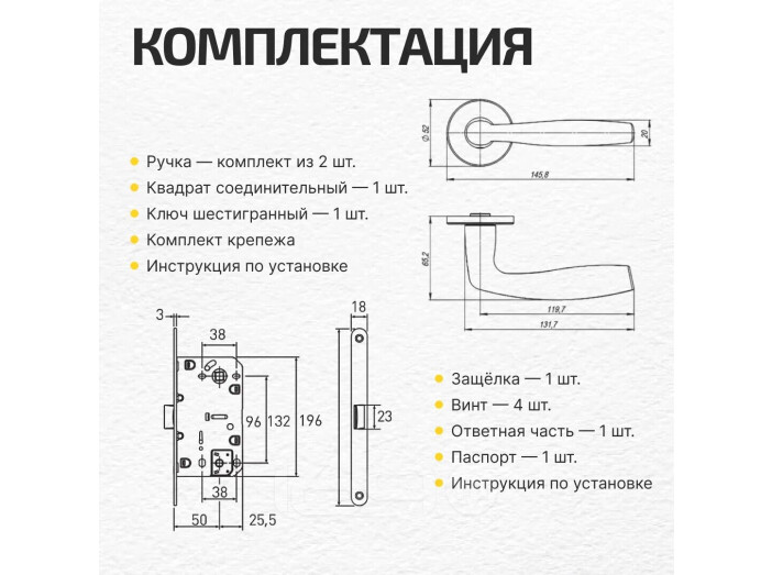 Комплектация:Ручка раздельная R.ARC.R52.FORTUNA SSG-39 сатин.золото + Петля универсальная без врезки IN4200W SB (200-2B 100x2,5) мат. золото ( 2 шт) + Защелка магнитная под фиксатор Vantage MC96 SB матовое золото + Ручка поворотная BK6.R.ARC.R52 (BK6 ARC) SSG-39 сатин.золото