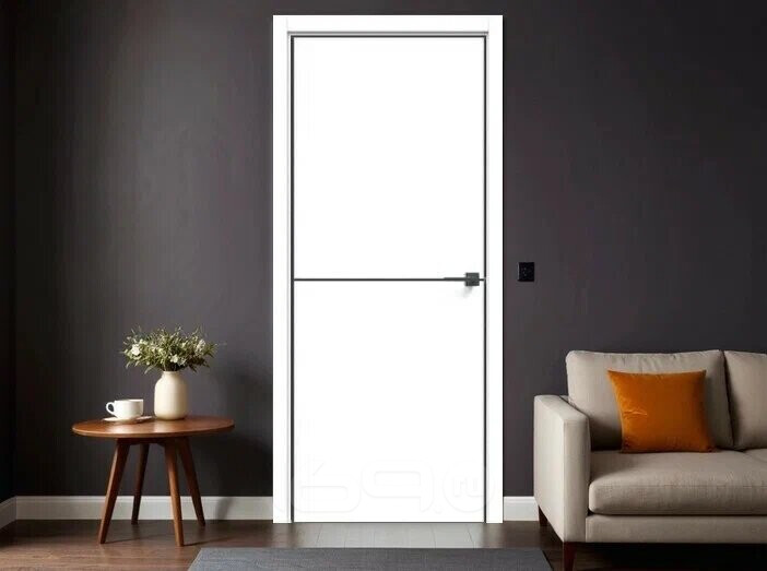 Дверь межкомнатная L10AL молдинг ПВХ Белый сатин, глухая, кромка алюминиевая черная матовая, царговая