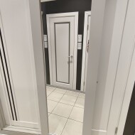 Дверь межкомнатная Concept-538 ПВХ Лайт грей, остекленная, зеркало, лакобель чёрный, кромка нет, царговая
