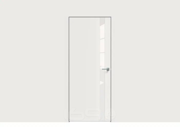 Дверь межкомнатная Concept-702 ПВХ, Белоснежно матовый, остекленная, лакобель белый, кромка алюминиевая матовый хром, каркасно-щитовая