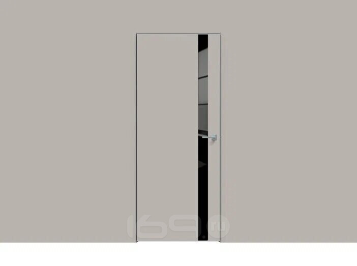 Дверь межкомнатная Concept-702 ПВХ, Шелл грей, остекленная, лакобель чёрный, каркасно-щитовая