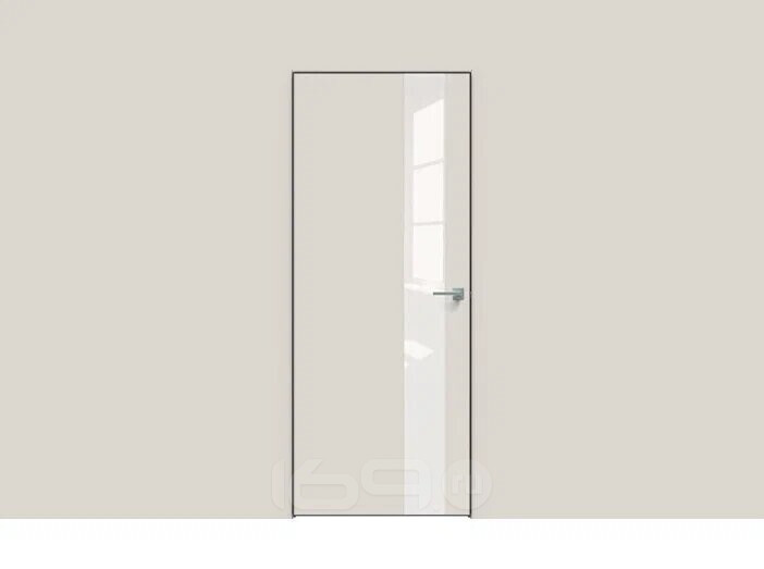 Дверь межкомнатная Concept-703 ПВХ, Лайт грей, остекленная, лакобель белый, кромка алюминиевая черная матовая, каркасно-щитовая