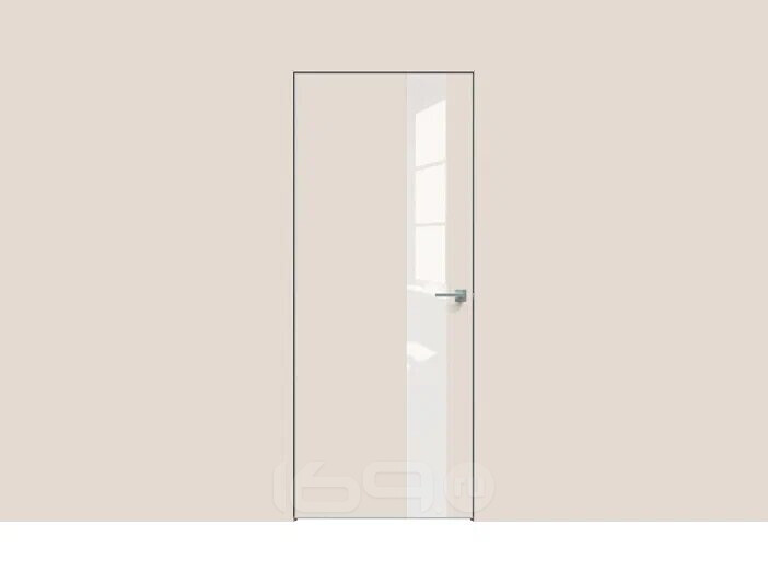 Дверь межкомнатная Concept-703 ПВХ, Магнолия, остекленная, лакобель белый, кромка алюминиевая матовый хром, каркасно-щитовая