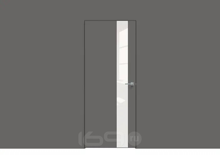Дверь межкомнатная Concept-703 ПВХ, Медиум грей, остекленная, лакобель белый, кромка алюминиевая черная матовая, каркасно-щитовая