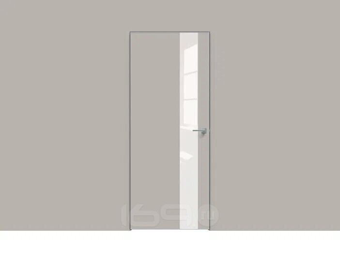 Дверь межкомнатная Concept-703 ПВХ, Шелл грей, остекленная, лакобель белый, кромка алюминиевая матовый хром, каркасно-щитовая