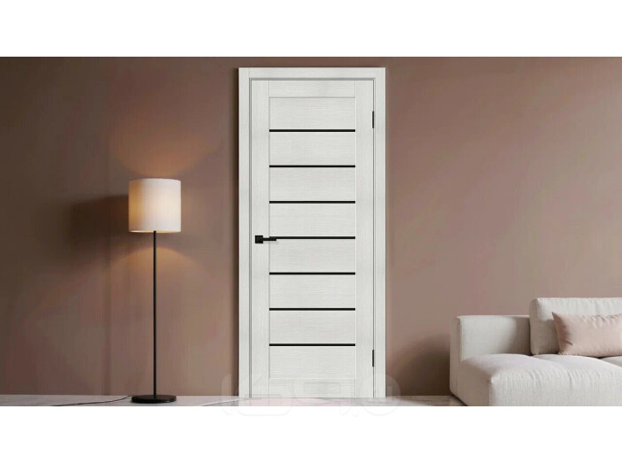 Дверь межкомнатная Браво-22 Экошпон Bianco melinga, остекленная, black shine, царговая