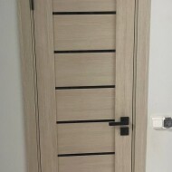 Дверь межкомнатная Браво-22 Экошпон Cappuccino Melinga, остекленная, black shine, кромка нет, царговая