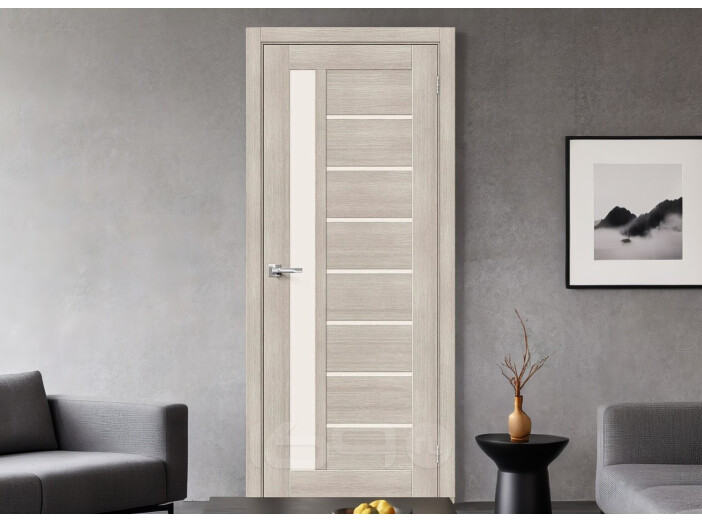 Дверь межкомнатная Браво-27 Экошпон Cappuccino Melinga, остекленная, magic fog, кромка нет, царговая 200x60