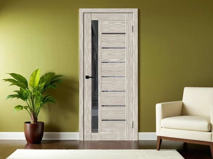 Дверь межкомнатная Браво-27 Экошпон, Cream Melinga, остекленная, mirox grey, царговая