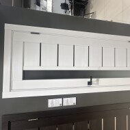 Рамочные (царговые) двери изготовлены из ЛВЛ (англ. Laminated Veneer Lumber, LVL) или высококачественного соснового бруса и плитных материалов, без пустот. Бескромочная технология производства. Крепеж из закаленной стали надежно фиксирует детали двери в 8 точках (у других производителей, как правило, не более 4).