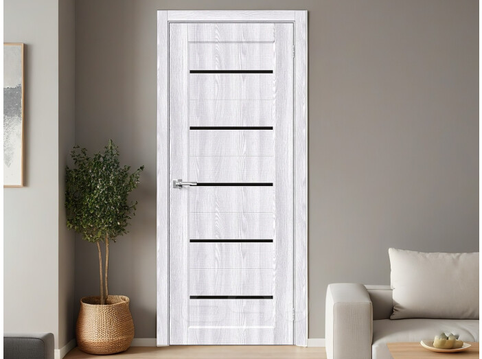 Дверь межкомнатная Мода-22 Экошпон, Riviera Ice, глухая, пластик black line, каркасно-щитовая