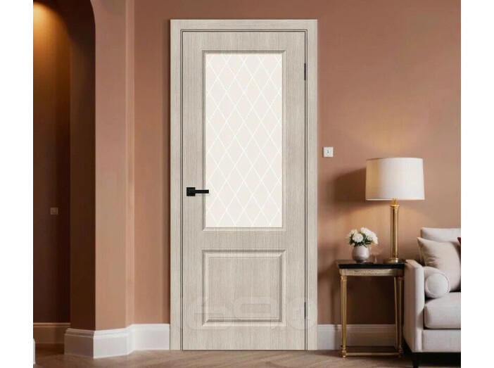 Дверь межкомнатная Скинни-13 Экошпон Cappuccino Melinga, остекленная, white сrystal, кромка пвх, скиновая