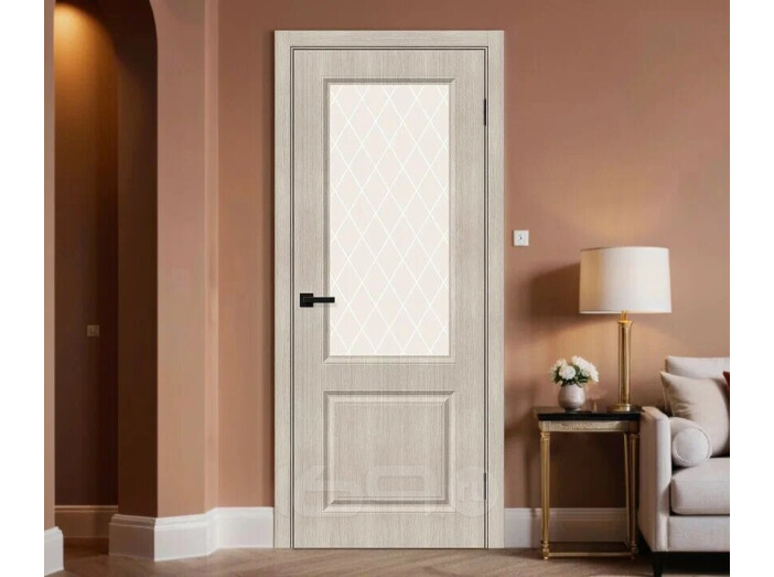Дверь межкомнатная Скинни-13 Экошпон Cappuccino Melinga, остекленная, white сrystal, кромка пвх, скиновая