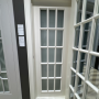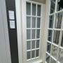 Дверь межкомнатная Англия 15 Эмаль RAL 9010, остекленная, декор багет, сатинат белый, каркасно-щитовая