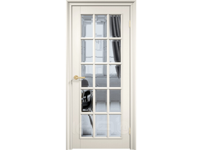 Дверь межкомнатная Англия 15 Эмаль RAL 9010, остекленная, декор багет, прозрачное с фацетом, каркасно-щитовая