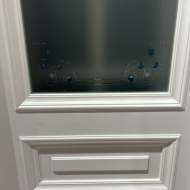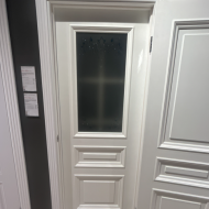 Дверь межкомнатная Багетто 1 Эмаль, Белый, остекленная, сатинат белый, каркасно-щитовая