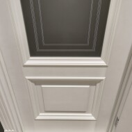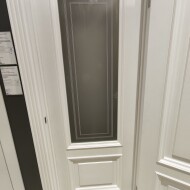 Дверь межкомнатная Багетто 2 Эмаль Белый, остекленная, декор багет, сатинат белый, кромка нет, каркасно-щитовая