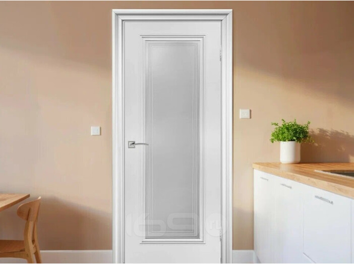 Дверь межкомнатная Венеция-1 Эмаль Белый, остекленная, сатинат белый с фотопечатью, каркасно-щитовая