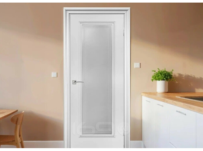 Дверь межкомнатная Венеция-1 Эмаль Белый, остекленная, сатинат белый с фотопечатью, каркасно-щитовая