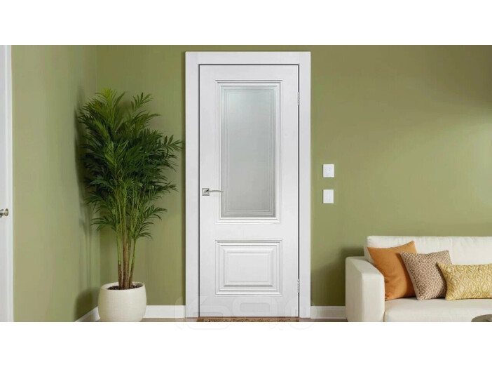 Дверь межкомнатная Венеция Эмаль Белый, остекленная, сатинат белый с фотопечатью, каркасно-щитовая