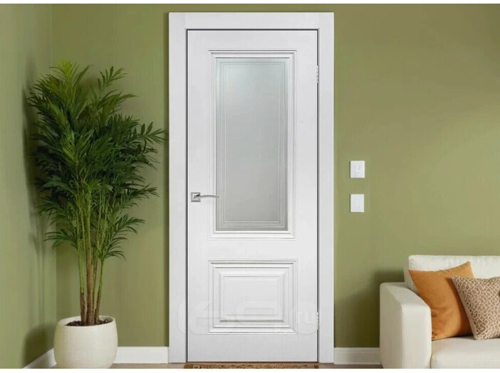 Дверь межкомнатная Венеция Эмаль, Белый, остекленная, сатинат белый с фотопечатью, каркасно-щитовая