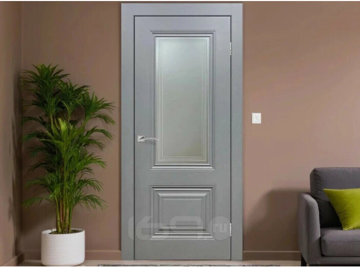Дверь межкомнатная Венеция Эмаль, Светло-серый, остекленная, сатинат белый с фотопечатью, каркасно-щитовая