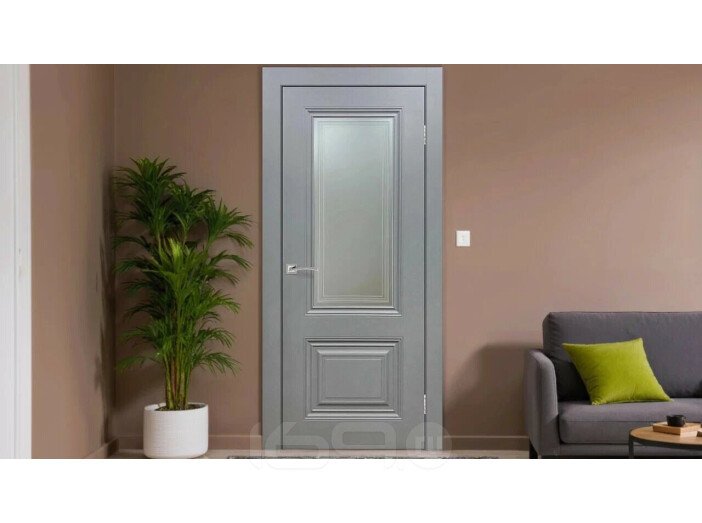 Дверь межкомнатная Венеция Эмаль Светло-серый, остекленная, сатинат белый с фотопечатью, каркасно-щитовая