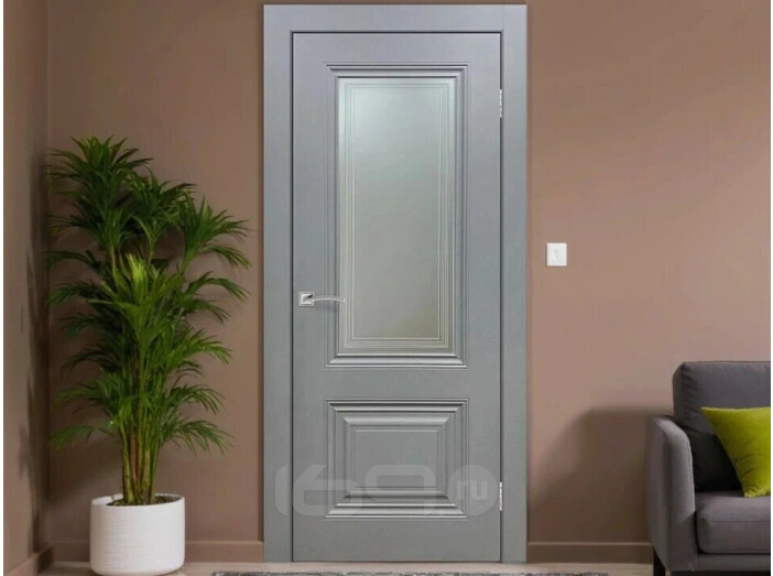 Дверь межкомнатная Венеция Эмаль, Светло-серый, остекленная, сатинат белый с фотопечатью, каркасно-щитовая