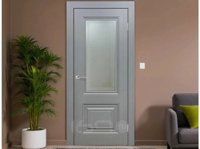 Дверь межкомнатная Венеция Эмаль, Светло-серый, остекленная, сатинат белый с фотопечатью, каркасно-щитовая