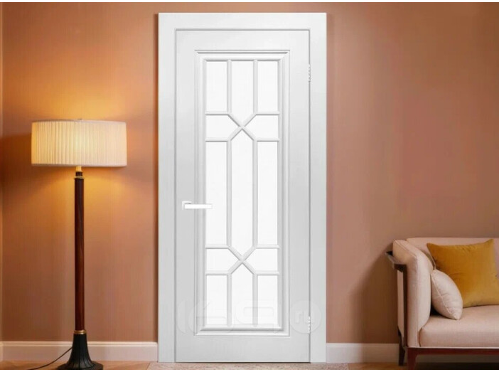 Дверь межкомнатная Виано Эмаль Белый, остекленная, сатинат белый, кромка нет, каркасно-щитовая