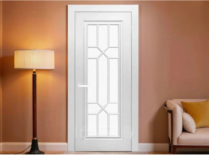 Дверь межкомнатная Виано Эмаль Белый, остекленная, сатинат белый, кромка нет, каркасно-щитовая