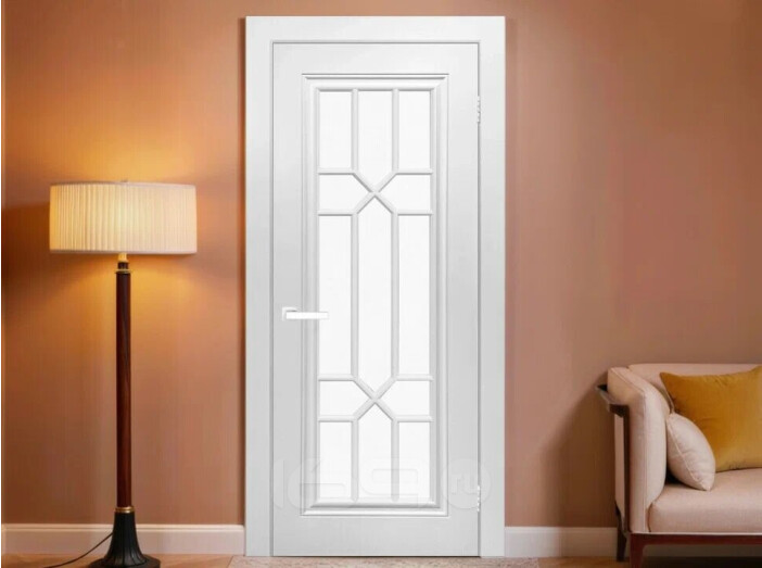 Дверь межкомнатная Виано Эмаль Белый, остекленная, сатинат белый, кромка нет, каркасно-щитовая