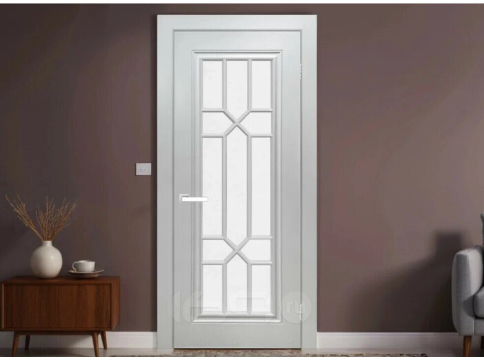 Дверь межкомнатная Виано Эмаль Светло-серый, остекленная, сатинат белый, кромка нет, каркасно-щитовая