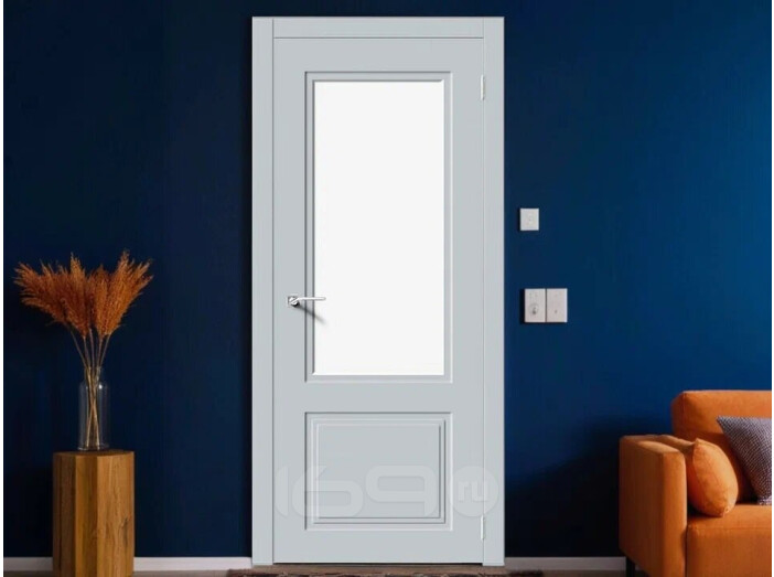 Дверь межкомнатная Квадро 2 Эмаль Лайт грей, остекленная, сатинат белый, кромка нет, каркасно-щитовая