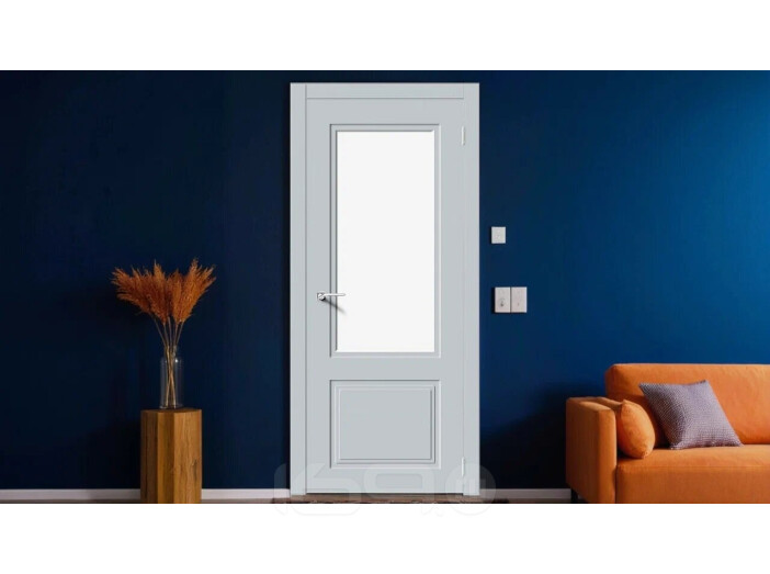 Дверь межкомнатная Квадро 2 Эмаль Лайт грей, остекленная, сатинат белый, каркасно-щитовая