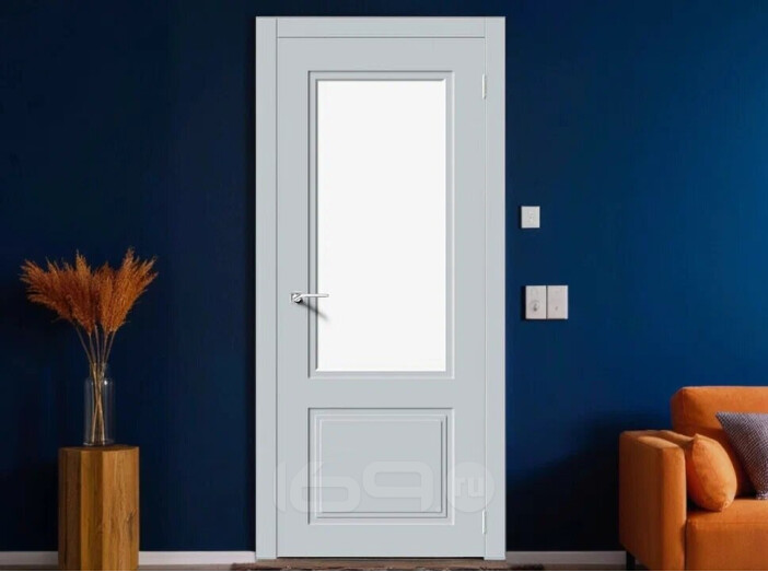 Дверь межкомнатная Квадро 2 Эмаль Лайт грей, остекленная, сатинат белый, кромка нет, каркасно-щитовая