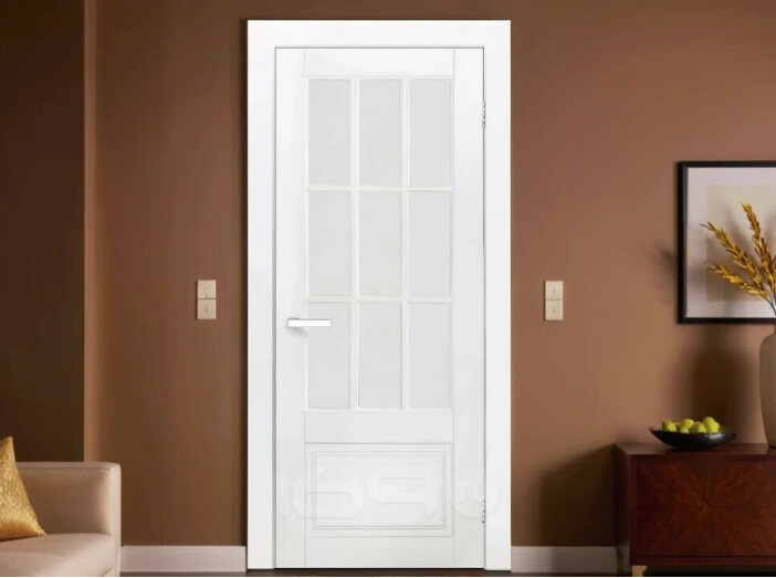 Дверь межкомнатная Лацио Эмаль Белый, остекленная, сатинат белый, кромка нет, каркасно-щитовая
