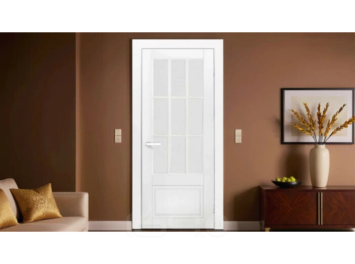 Дверь межкомнатная Лацио Эмаль Белый, остекленная, сатинат белый, каркасно-щитовая