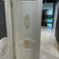 Материал:Каркас полотна из LVL бруса(наборно-поперечная рейка) + МДФ, стоевые и поперечные части полностью массивные. Между филенками встраивается жесткий сотовый наполнитель, обеспечивает жесткость, предупреждает деформацию при механических воздействиях на дверь.