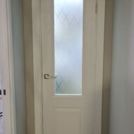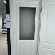 Дверь межкомнатная Скинни-13 Эмаль Whitey, остекленная, white сrystal, кромка нет, скиновая