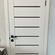 Дверь межкомнатная Браво-22 Эмалит White Matt, остекленная, black star, царговая 200x90