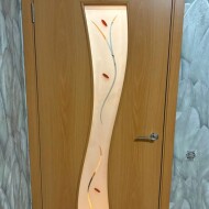 Дверь межкомнатная 11Ф Финиш Флекс, Ламинированные, Л-12 (МиланОрех), остекленная, белое художественное, с элементами фьюзинга, каркасно-щитовая