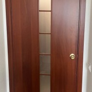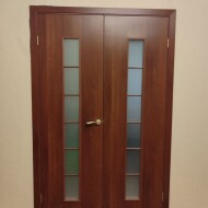 Дверь межкомнатная 2С Ламинированные Л-11 (ИталОрех), остекленная, сатинат белый, кромка обычная, каркасно-щитовая