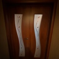 Дверь межкомнатная 11Ф Ламинированные Л-11 (ИталОрех), остекленная, белое художественное, с элементами фьюзинга., кромка пвх, каркасно-щитовая