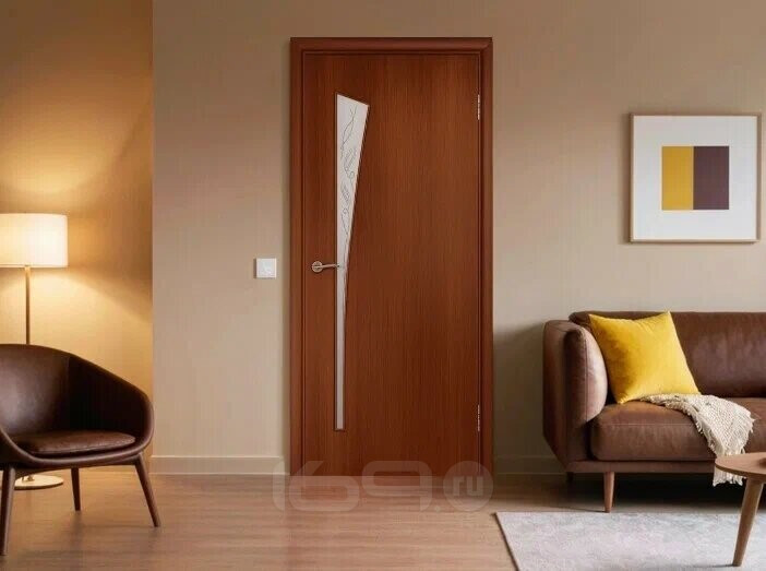 Дверь межкомнатная Belezza Ламинированные Итальянский орех, остекленная, сатинат белый, кромка обычная, каркасно-щитовая
