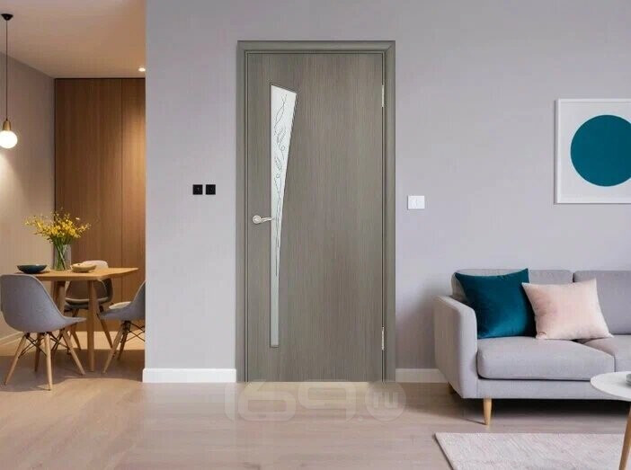Дверь межкомнатная Belezza Ламинированные Серый, остекленная, сатинат белый, кромка обычная, каркасно-щитовая 190x55