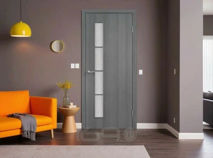 Дверь межкомнатная Тип С-14 Ламинированные Серый, остекленная, сатинат белый, кромка обычная, каркасно-щитовая 200x90
